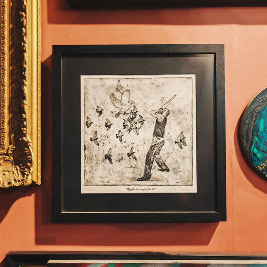 That's the way to do it! - framed etching - 48 x 48cm including frame