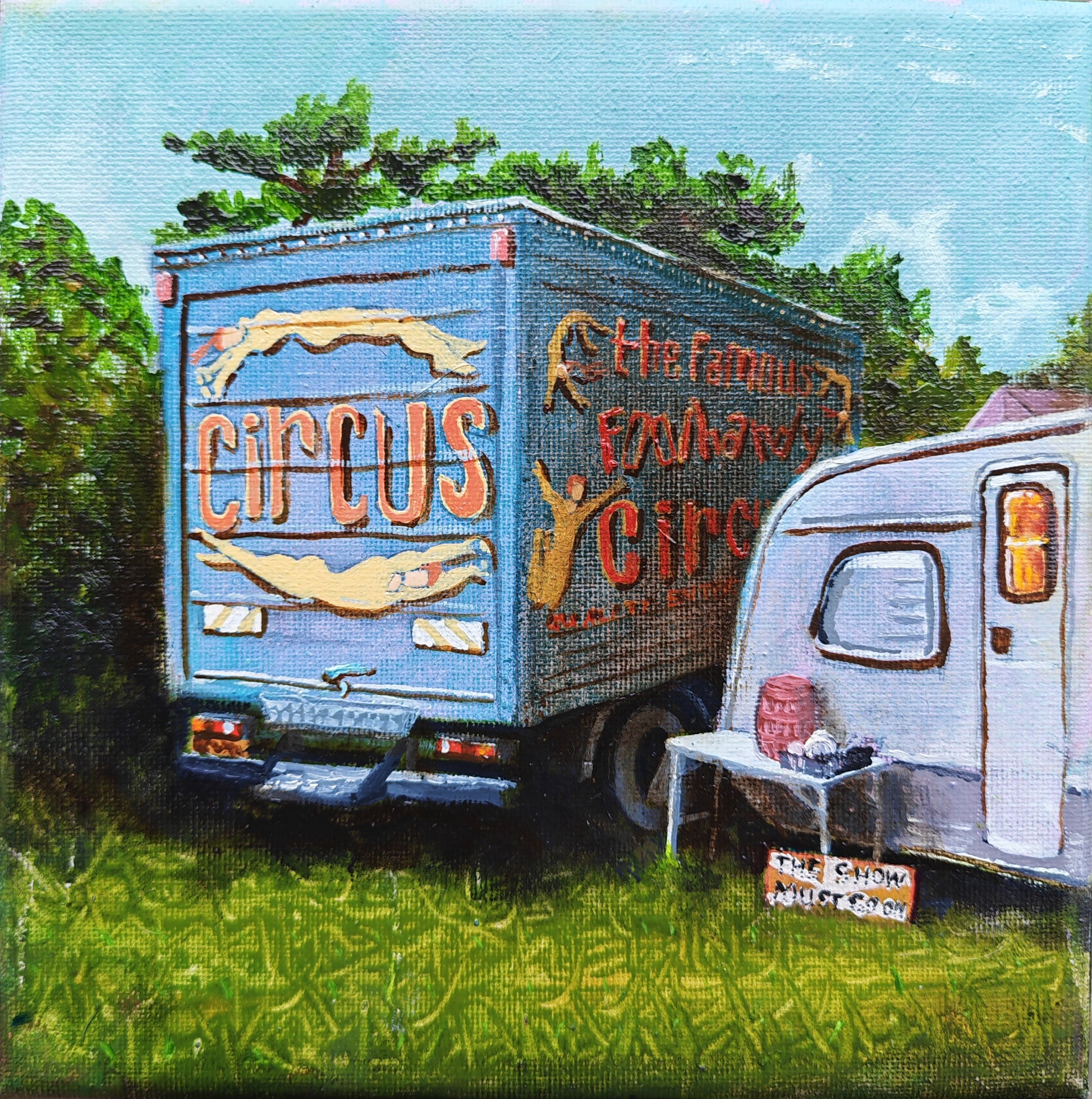 The Foolhardy Circus- 20 x 20cm - oil and acrylic on canvas by Will Teather